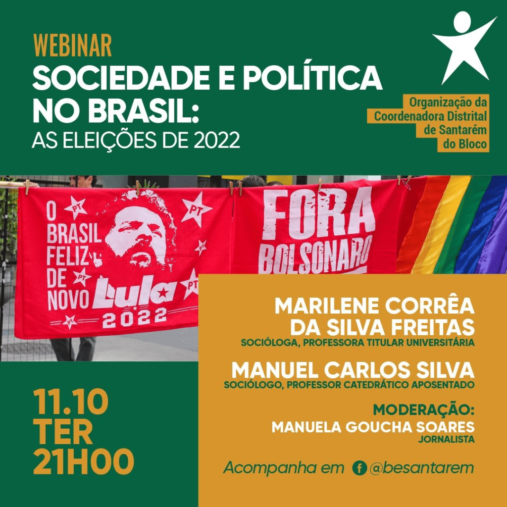 A 2ª volta das presidenciais no Brasil terá lugar no próximo dia 30 de outubro. Confrontam-se Lula da Silva, que ganhou na 1ª volta com 48,4%, e Bolsonaro que obteve 43,2% dos votos, numa disputa entre o campo democrático e o campo fascista. Mas o debate sobre as eleições presidenciais no Brasil está muito para além dos resultados que se deseja serem uma vitória progressista de Lula da Silva.