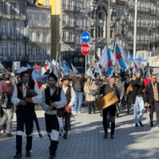 Realizou-se uma colorida caminhada pelo centro histórico: um mar de bandeiras estreleiras brancas e azuis, no centro com a estrela comum, aquela que une os povos socialistas do mundo. Acompanhados por gaiteiros e bombos, foram feitas paragens no Jardim do Palácio de Cristal e no coreto do Jardim da Cordoaria onde, em uníssono, foi cantada a “Grândola Vila Morena” e o “Hino da Galiza”. Iconicamente, foram desfraldadas as bandeiras de Portugal e da Galiza na ponte D. Luís, na fronteira Sul da república galega.