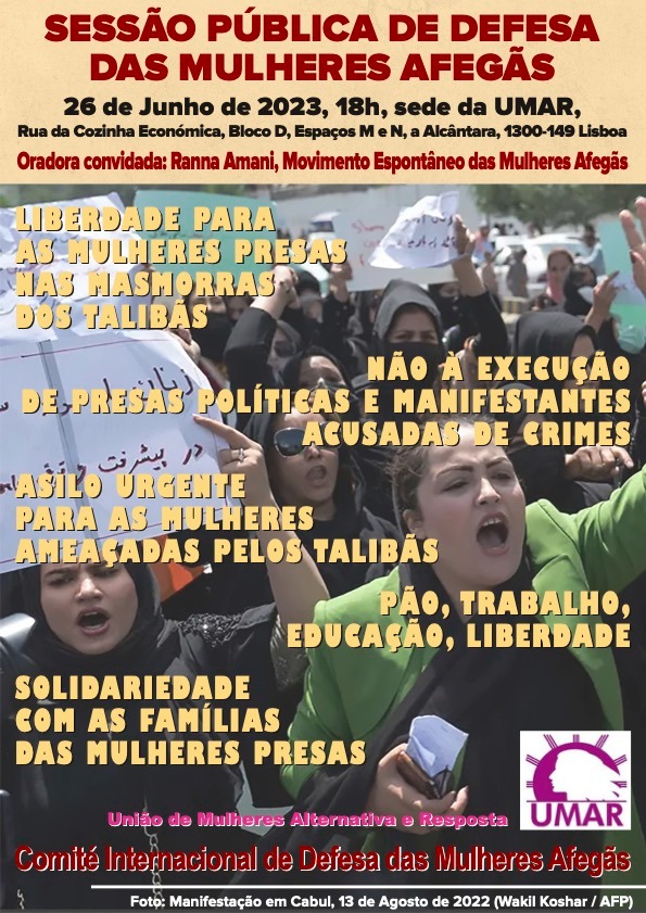 SESSÃO EM DEFESA DAS MULHERES AFEGÃS, CONTRA A REPRESSÃO DOS TALIBÃS – Dia 26 | 2ª feira | 18:00 h | Sede da UMAR em Lisboa