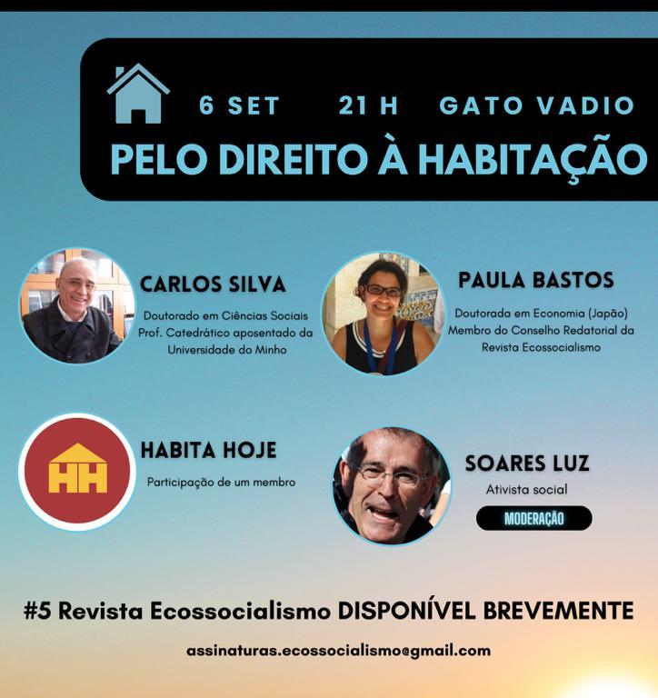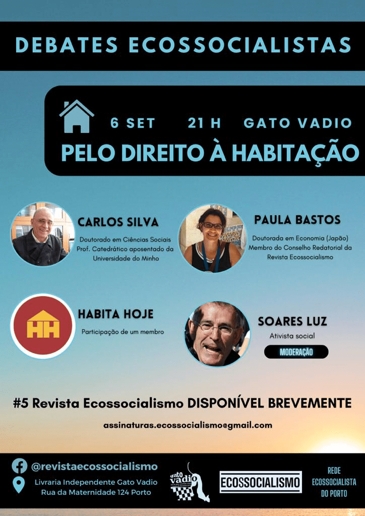 Debate na Livraria “Gato Vadio”, Porto, no dia 6, quinta-feira, pelas 21:00 horas promovido pela Rede Ecossocialista do Porto e revista ECOSSOCIALISMO, com: