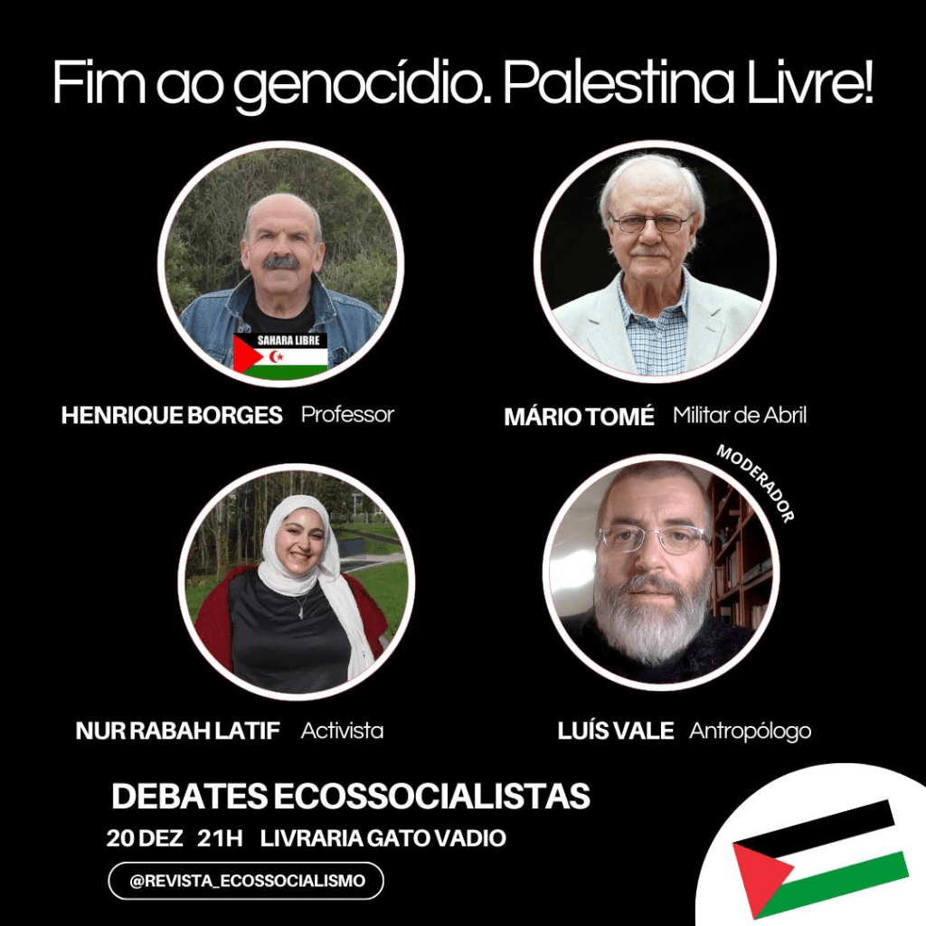 No próximo dia 20 de dezembro, 4ª feira, pelas 21:00 h, na Livraria “Gato Vadio”, Porto, com Henrique Borges, Mário Tomé, Nur Rabah Latif e Luís Vale. Transmissão em direto na página do Facebook da Revista Ecossocialismo – https://www.facebook.com/revista.ecossocialismo