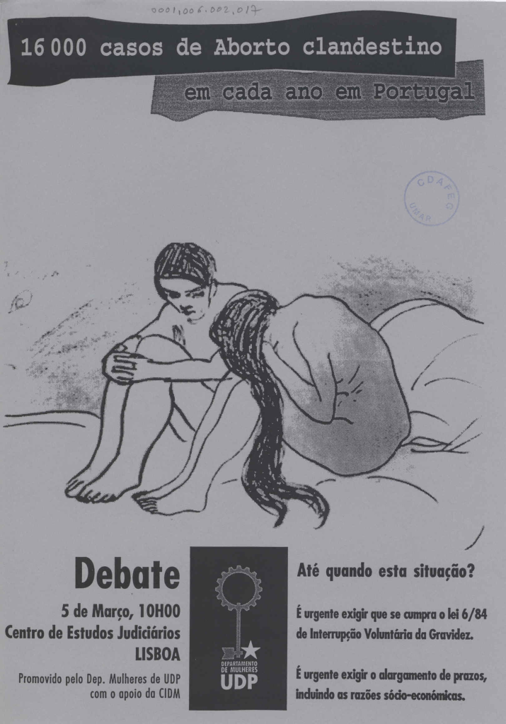 Debate promovido pelo Departamento de Mulheres da UDP e intervenção de abertura do debate sobre a legalização do aborto, em 1995.