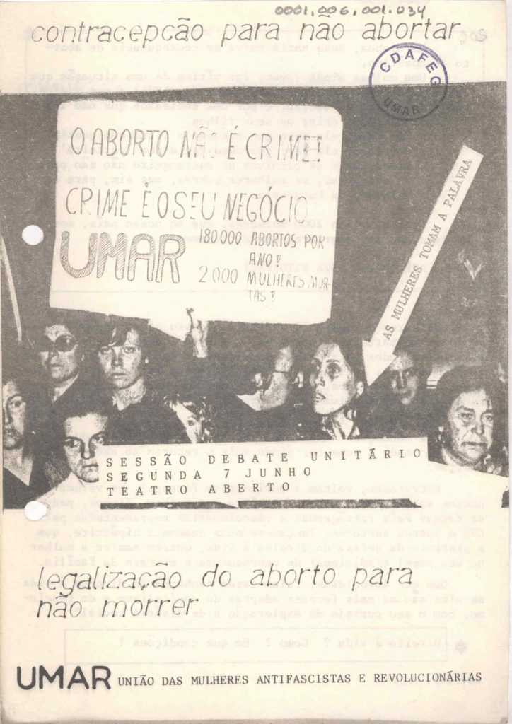 Documento da UMAR de 1979, com convocatória de sessão pública. A UMAR está na primeira linha pela legalização do aborto desde a primeira hora.