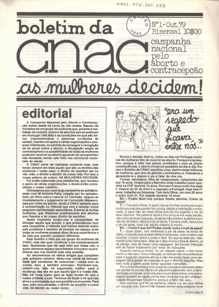 A Campanha Nacional pelo Aborto e Contracepção tinha nascido no início de 1979 e publica o seu Boletim nº 1 em Outubro.
