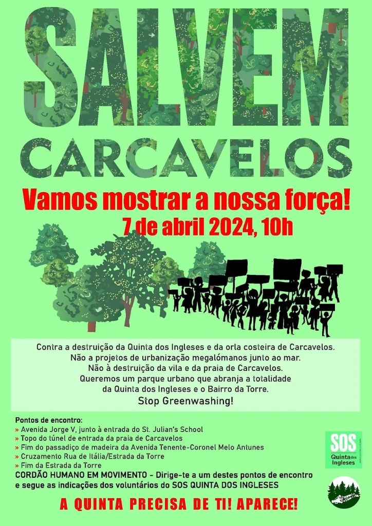 Manif. dia 7, domingo, pelas 10:00 horas, em Carcavelos, contra a Destruição da Qt.ª dos Ingleses e da orla costeira. Em defesa de um parque urbano e da preservação da linha litoral. Contra urbanizações megalómanas.