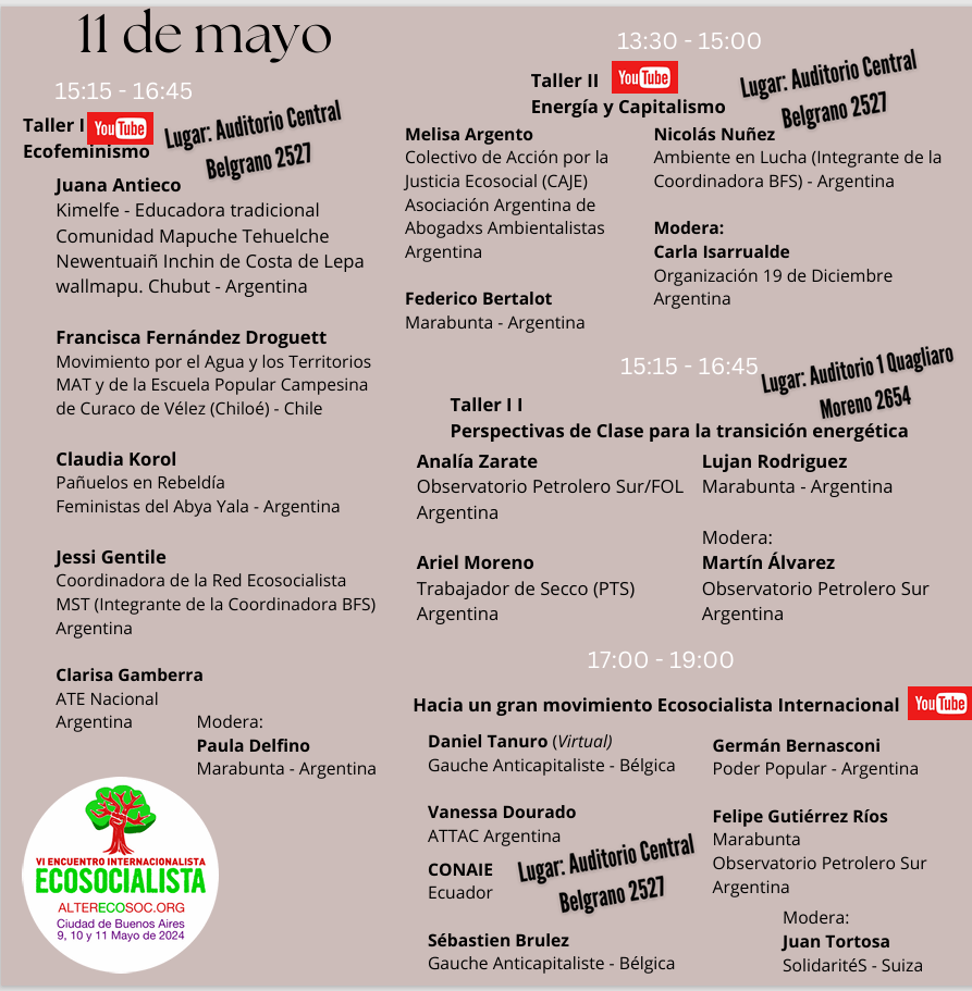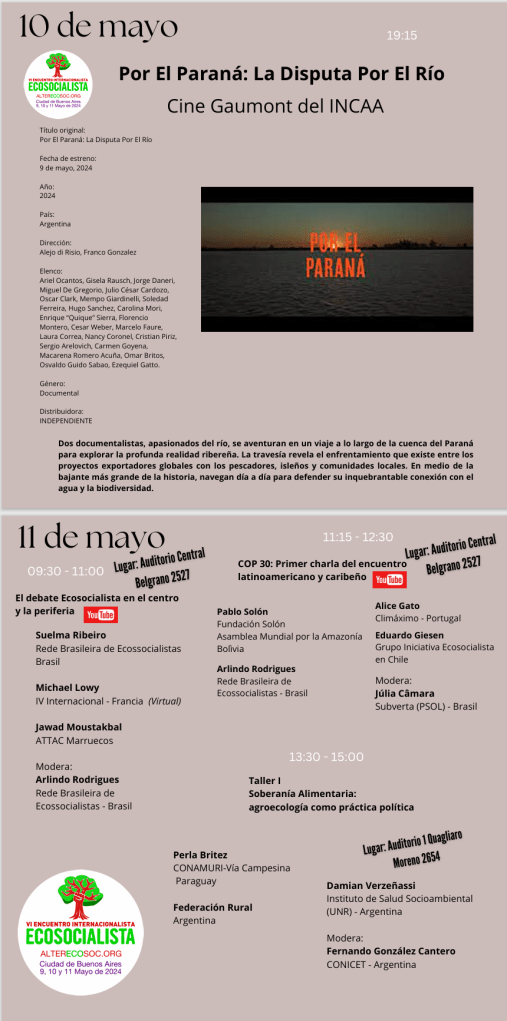 Uma delegação portuguesa da Rede Ecossocialista – Associação Política participará no VI Encontro Ecossocialista Internacional que terá início no próximo dia 10 de maio, em Buenos Aires. Estão previstos 200 participantes de 15 países e de 50 coletivos/organizações.