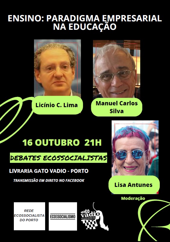 A revista ECOSSOCIALISMO promove um debate sob o tema “O paradigma empresarial na educação”, no próximo dia 16, quarta-feira, a partir das 21:00 horas na Livraria Gato Vadio.