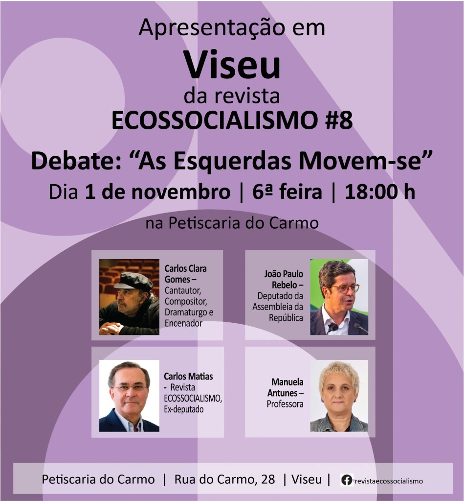 Debate e apresentação da revista ECOSSOCIALISMO – dia 1/nov, sexta-feira, 18:00 h, na Petiscaria do Carmo (Rua do Carmo, 28, em Viseu)