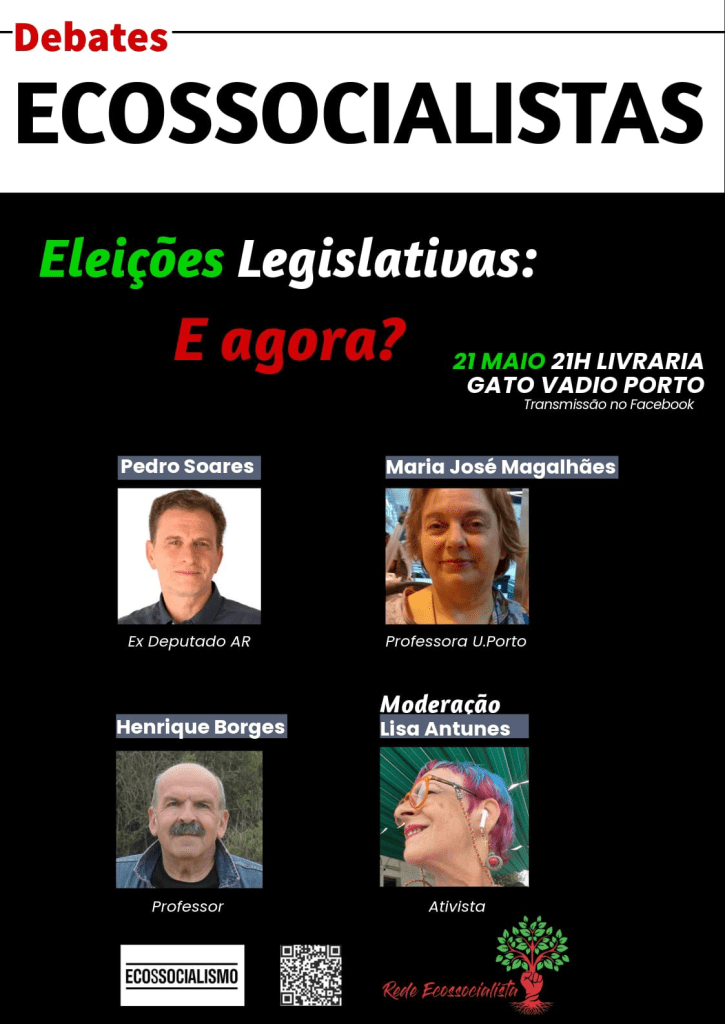 As eleições Legislativas 2025 ocorridas no passado domingo resultaram num reforço da direita no Parlamento e no crescimento da extrema-direita. Nem uns nem outros são conhecidos pela defesa de políticas de combate às alterações climáticas e de maior justiça social. Por seu lado, a esquerda saiu derrotada e é minoritária no seu conjunto. O que pode ser previsto é que a AD forme governo sem que esteja suportado por uma maioria absoluta, o que levanta a possibilidade de poder vir a ser viabilizado pelo PS. E agora, com este novo quadro político, o que fazer? É este o mote para o próximo debate na Livraria Gato Vadio, no Porto, com Pedro Soares, Maria José Magalhães e Henrique Borges, moderado por Lisa Antunes.