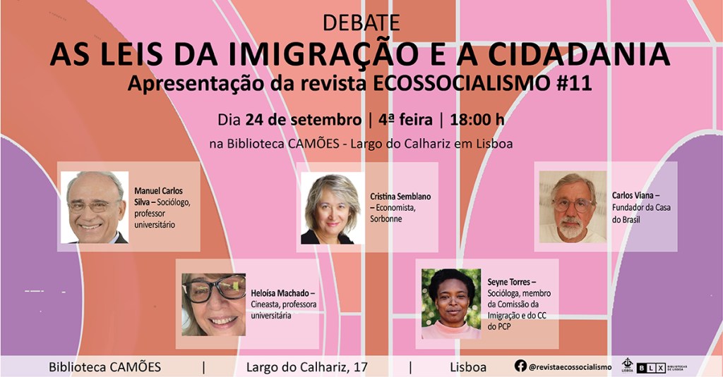 Sessão de apresentação da revista ECOSSOCIALISMO #11 com debate sobre “As Leis da Imigração e a Cidadania”, no próximo dia 24 setembro, pelas 18:00 horas, na Biblioteca Camões/Lisboa, com: