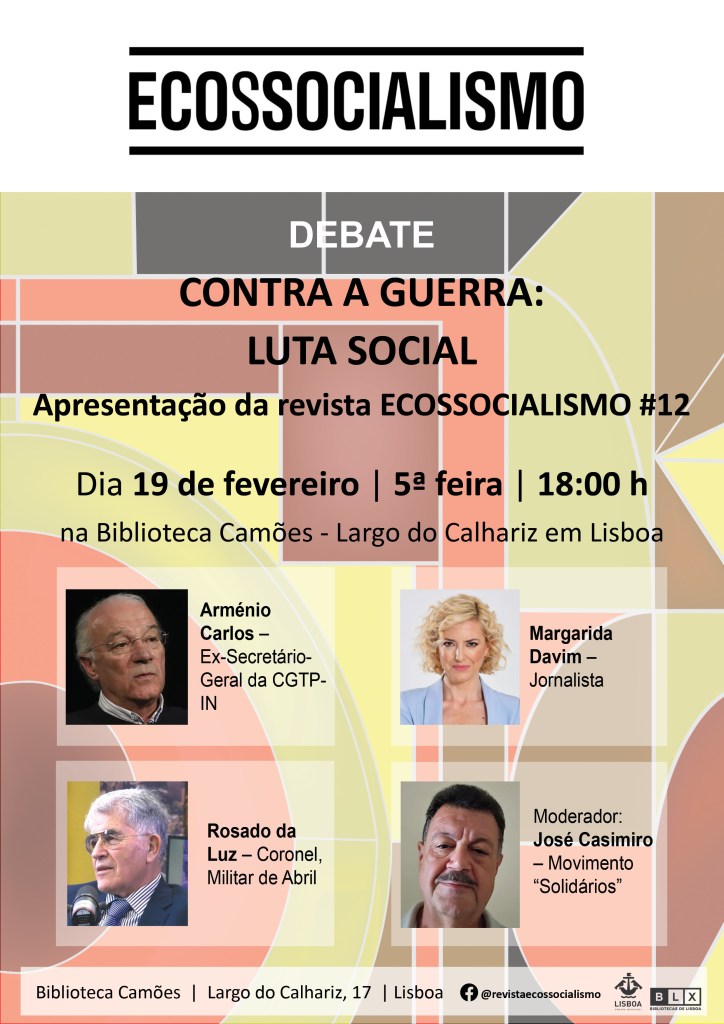 Na Biblioteca Camões, em Lisboa, dia 19 fevereiro, quinta-feira, 18:00 horas, com: Arménio Carlos, Margarida Davim, Rosado da Luz e José Casimiro como moderador.